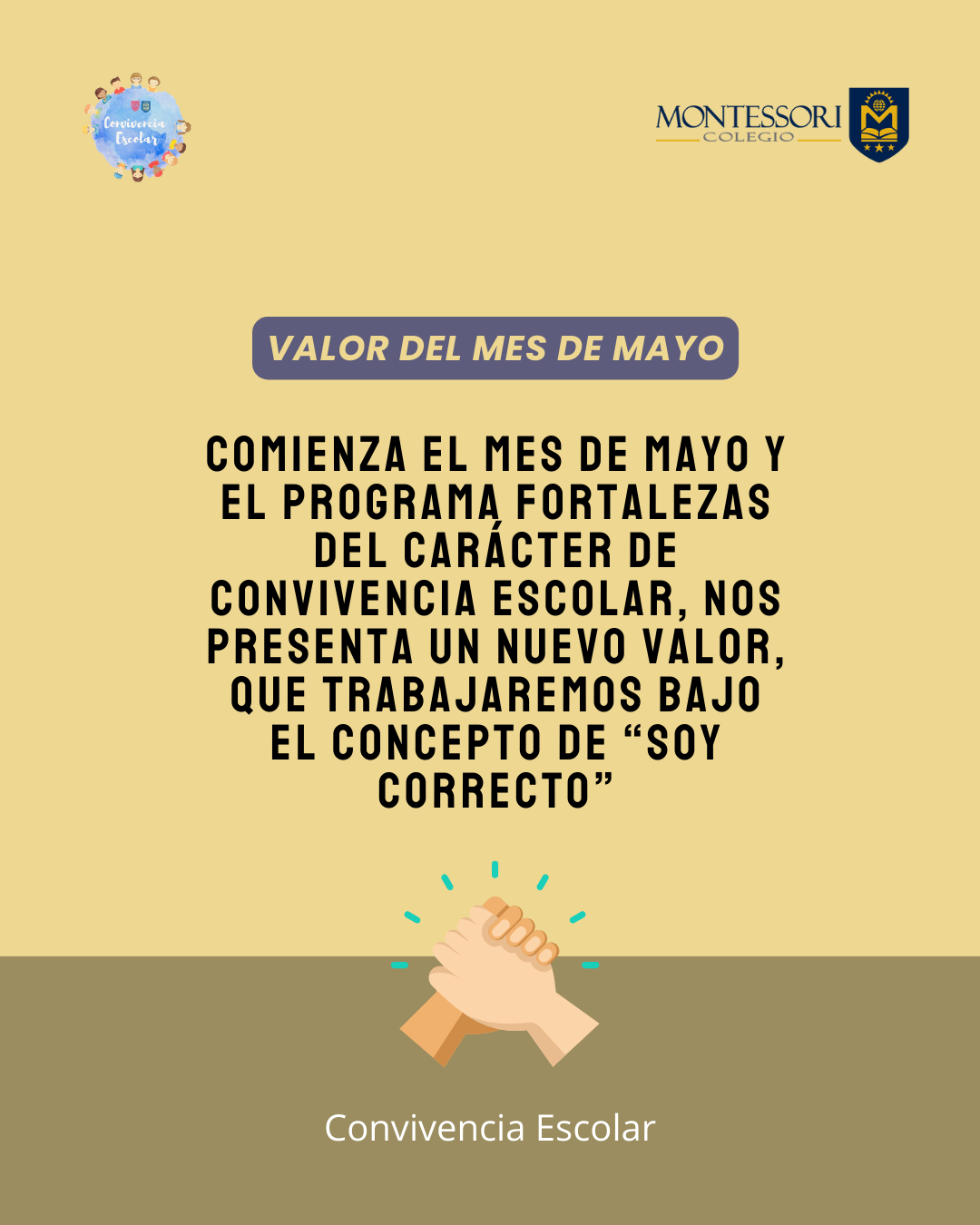 Comienza el mes de mayo y a través del programa Fortalezas del Carácter, el equipo de Convivencia Escolar nos presenta un nuevo valor, la honestidad, que trabajaremos bajo el concepto de: Soy Correcto.