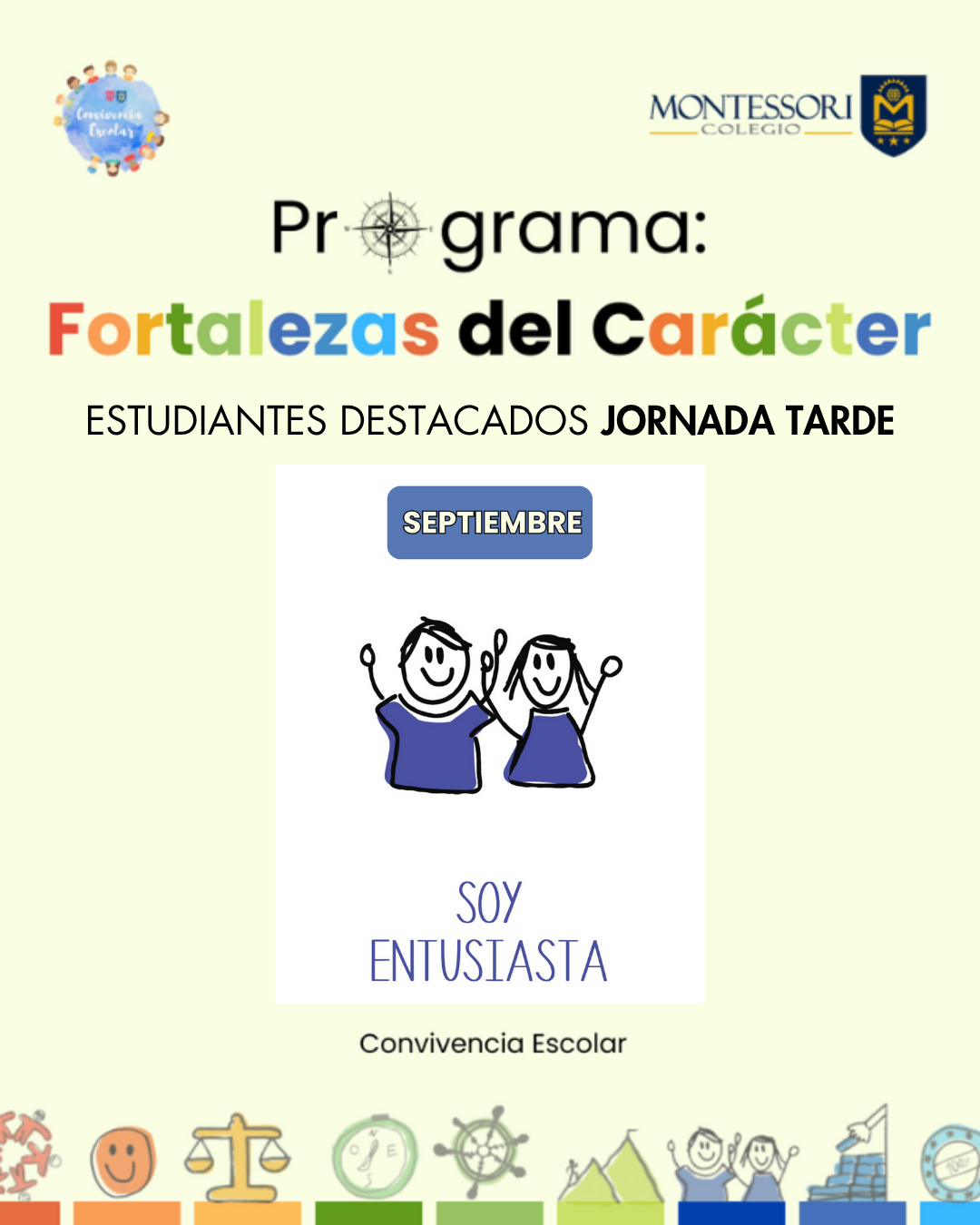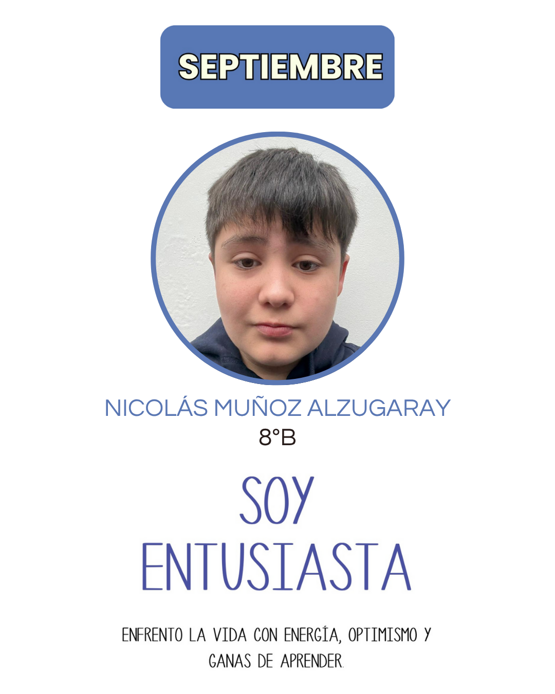El área de Convivencia Escolar reconoce a aquellos estudiantes que se distinguieron por vivir y reflejar el valor “Soy Entusiasta”, demostrando alegría, motivación y compromiso en cada una de sus actividades.