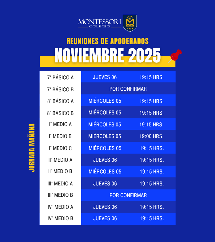 Junto con saludar informamos a Uds. que los días Miércoles 05 y Jueves 06 de Noviembre se realizará nuestra tercera Reunión de Padres y Apoderados del 2° Semestre 2025, correspondiente a los cursos de la Jornada Mañana.
