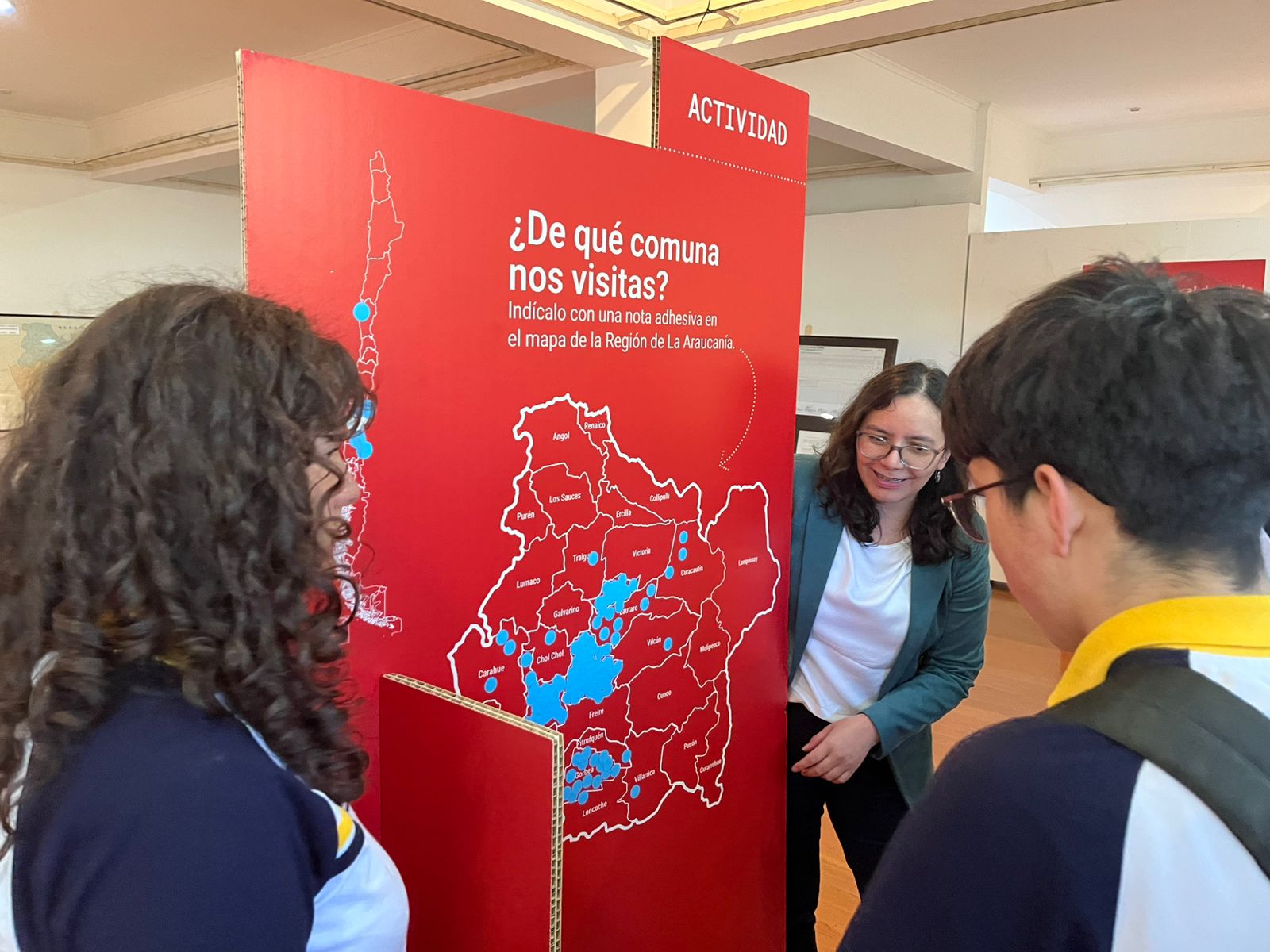 Durante la salida pedagógica, los alumnos a cargo del profesor Diego Muñoz visitaron la muestra realizada en la Galería de Artes del Museo Nacional Ferroviario Pablo Neruda de Temuco, para conocer la historia del SERVEL y del sufragio, así como también la importancia de una ciudadanía informada.
