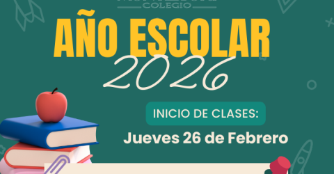 Estimados Padres y Apoderados, Junto con saludar cordialmente informamos a Uds. fechas y orientaciones relevantes sobre el Inicio del Año Escolar 2026 en nuestro colegio: RECESO ACADÉMICO Y ADMINISTRATIVO Viernes 02 de Enero al Viernes 20 de Febrero 2026 ATENCIÓN DE OFICINAS Lunes 23 de Febrero 2026 INICIO DE CLASES Jueves 26 de Febrero 2026 JORNADA MAÑANA … Sigue leyendo Inicio del Año Escolar 2026