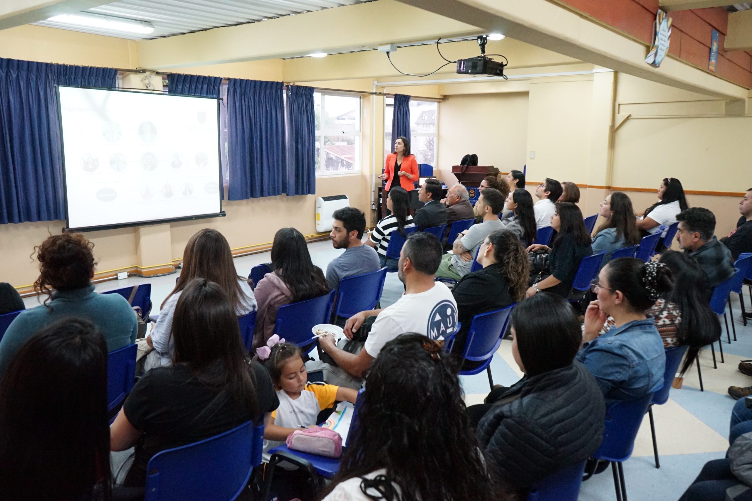La reunión de inducción fue liderada por el Equipo Directivo encabezado por el Rector, Sr. Nelson Pinilla, quien dio la bienvenida oficial a los padres y apoderados. La presentación a cargo de la Coordinadora Académica de la Jornada Tarde, Profesora Paola Pinilla, mostró los principales aspectos académicos y administrativos de nuestro establecimiento, resolviendo dudas y orientando a los padres sobre el funcionamiento del colegio.