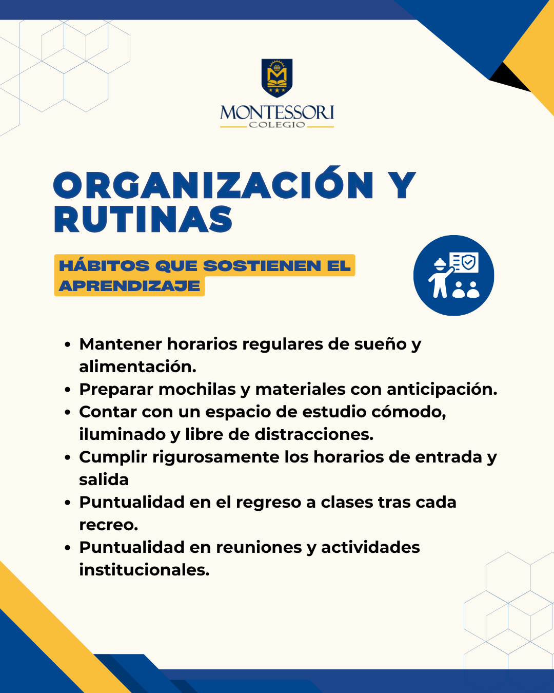 Iniciar bien el año es importante; sostener buenos hábitos durante todo el período escolar es fundamental, por ello, compartimos Compromisos y Orientaciones que buscamos fortalecer como prácticas permanentes en nuestra comunidad.