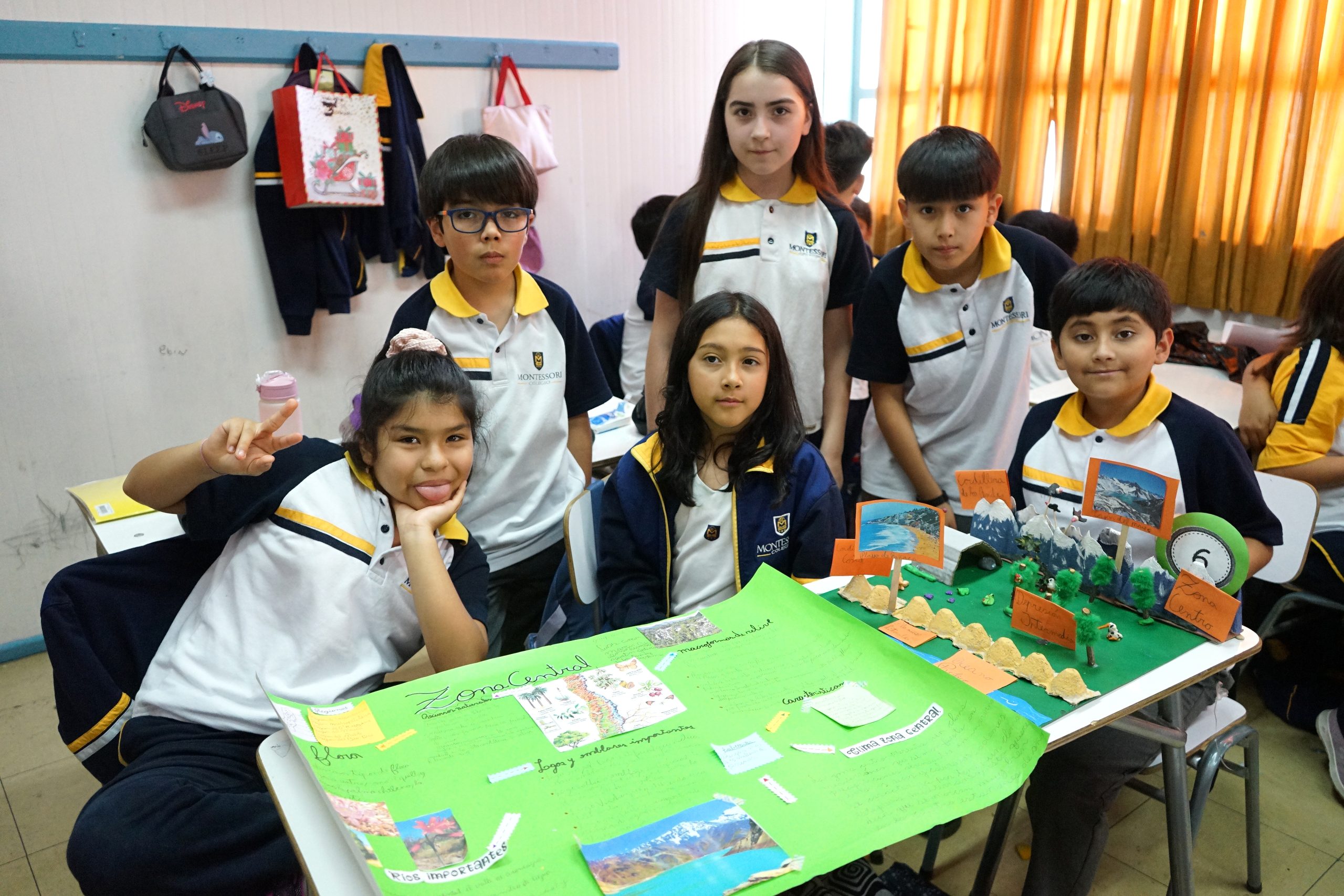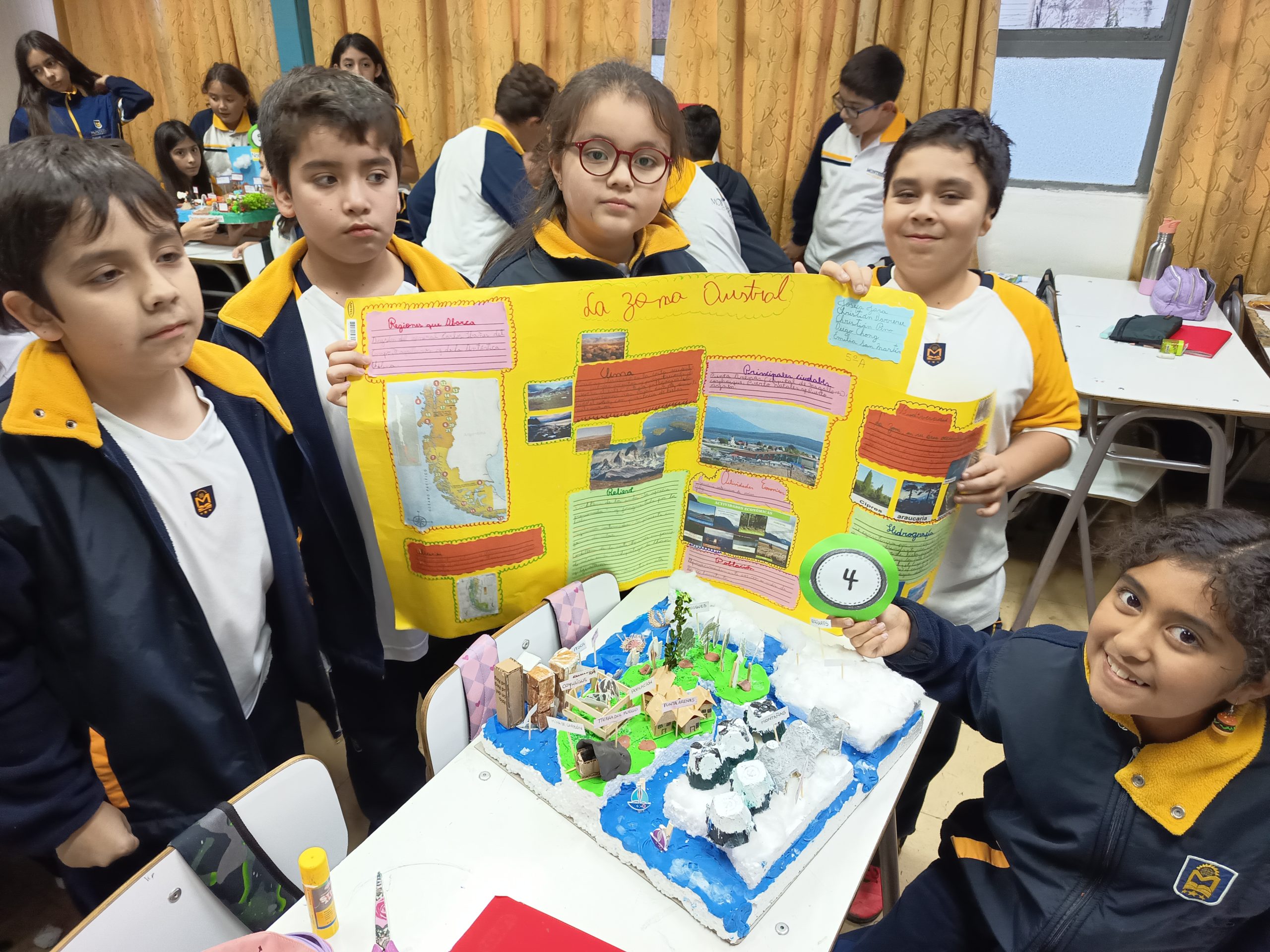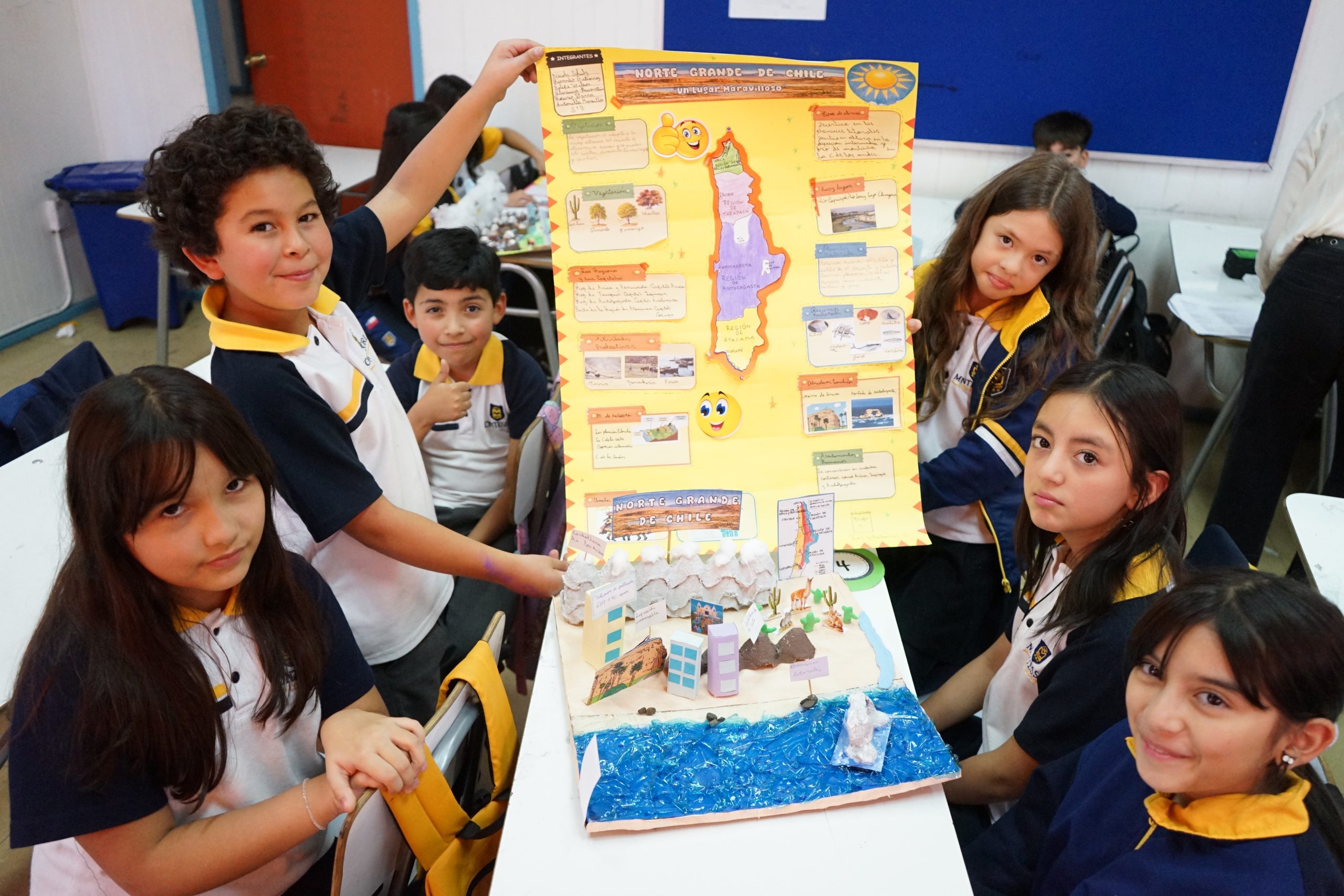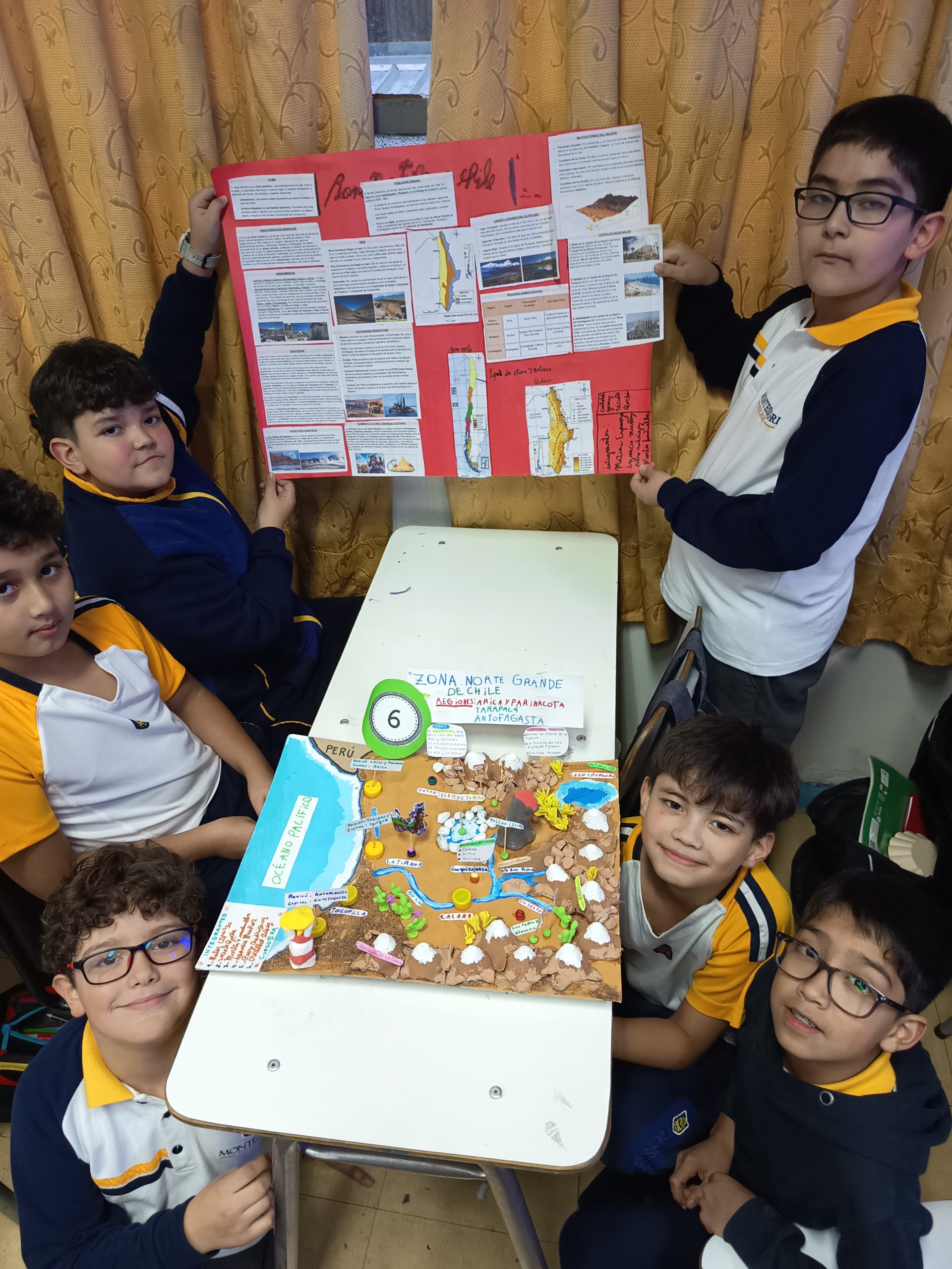 En el marco de la asignatura de Historia y Geografía los estudiantes de 5° años básicos A y B representaron y caracterizaron una zona natural de Chile, creando coloridas maquetas y afiches informativos, bajo la metodología de pensamiento de diseño y trabajo colaborativo aplicada por la profesora Susana Belmar.