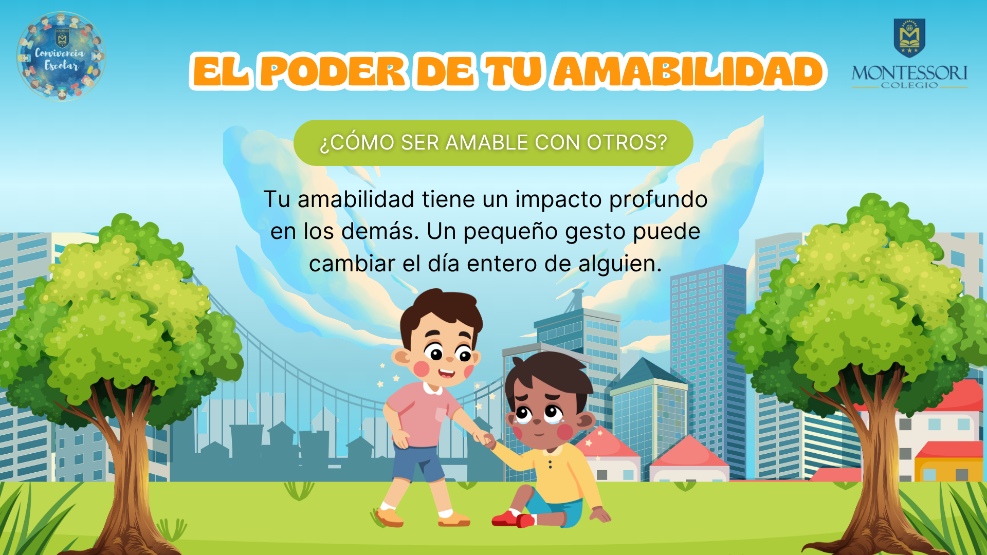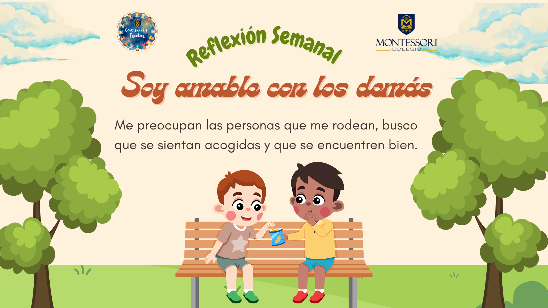 ¿Cómo ser amable con otros? Cuando hablamos de ser amables con los demás, hablamos de preocuparnos por las personas que nos rodean, buscando que se sientan acogidas y que se encuentren bien. En la reflexión de esta semana, seguimos trabajando el valor del mes: la amabilidad.