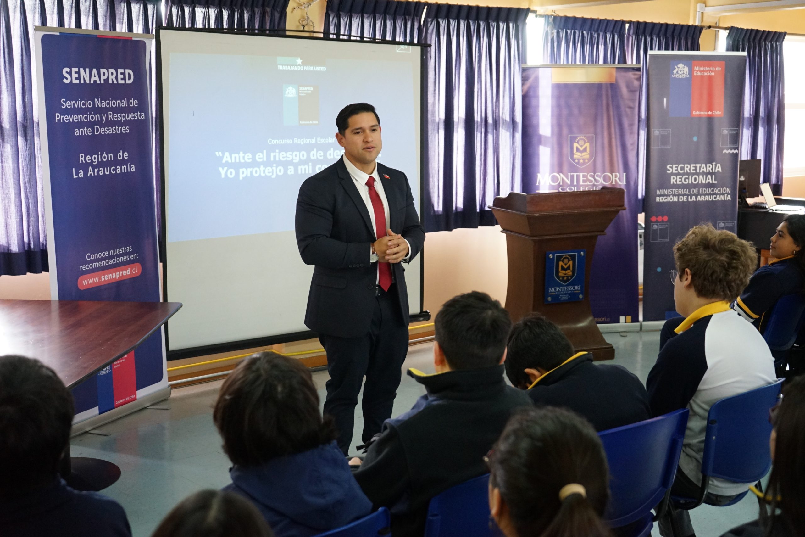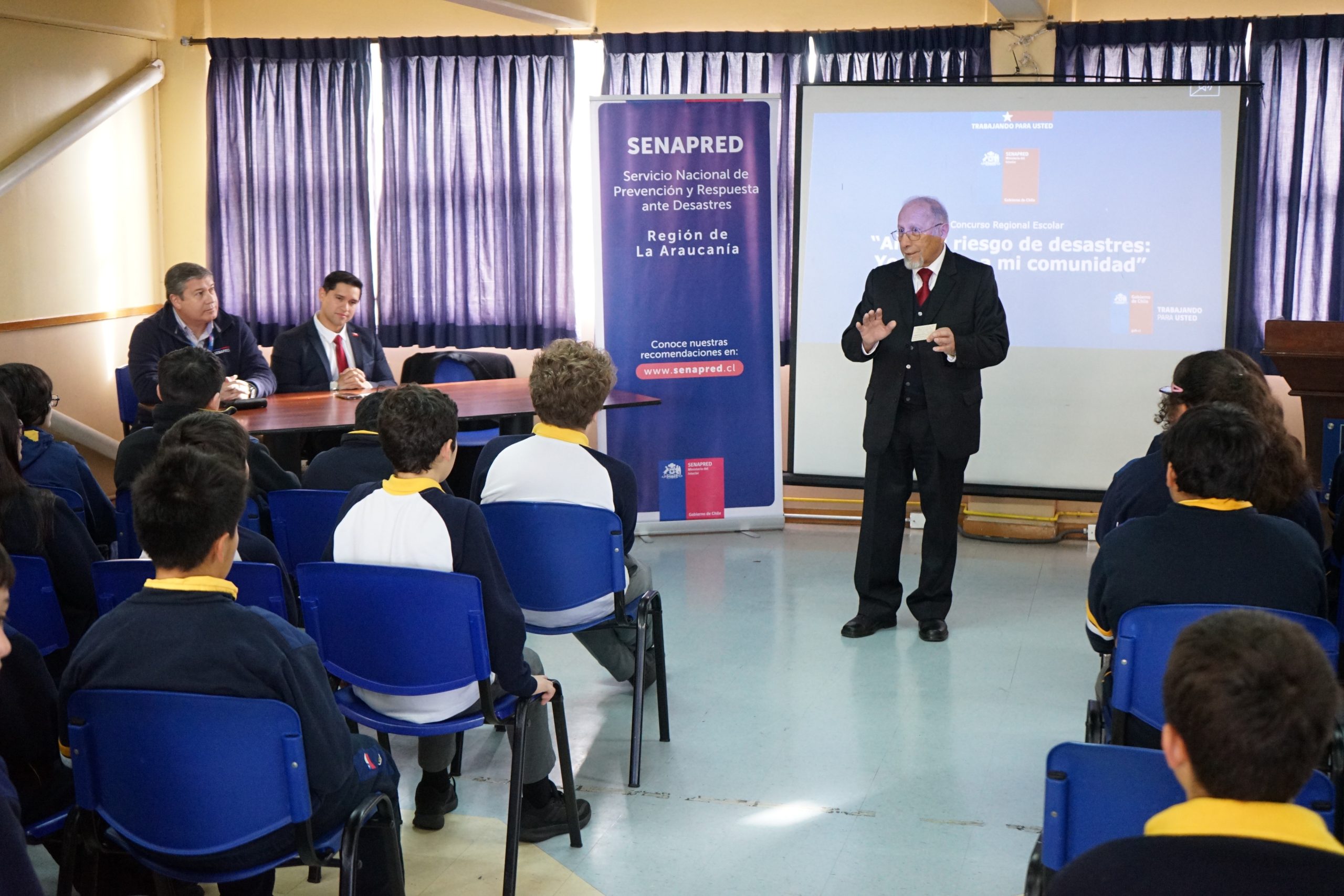 Con el objetivo de fortalecer la educación y la concientización en reducción del riesgo de desastres desde el entorno escolar, el Servicio Nacional de Prevención y Respuesta ante Desastres (Senapred) junto a la Seremi de Educación de La Araucanía, visitaron nuestro colegio para realizar una jornada de difusión del concurso regional de video escolar “Ante el riesgo de desastres: Yo protejo a mi comunidad”.